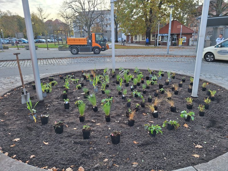 Umgestaltung des Kreisels am Bahnhof - Bepflanzung mit insektenfreundlichen Stauden und Blumenzwiebeln