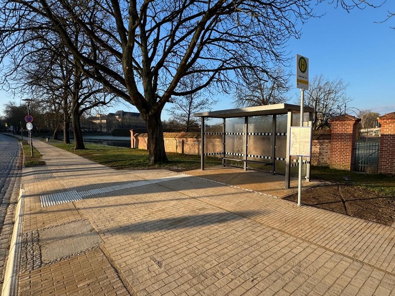 Nach Baubeginn im März konnte am 02.04.2026 die Haltestelle zur Nutzung durch die REBUS Regionalbus Rostock GmbH wieder frei gegeben werden. Die Haltestelle verfügt jetzt über Busborde für Niederflurbusse, einen neuen Fahrgastunterstand mit Sitzbank und Bodenindikatoren. Im Anschluss der Haltestelle wurde eine Möglichkeit geschaffen, für Radfahrer von der Fahrbahn auf den beginnenden Radweg zu wechseln.
