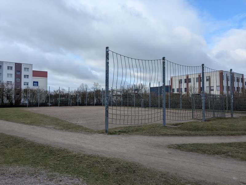 Ausstattung: drehbare Seilpyramide, Sandspielturm mit Rutsche für kleinere Kinder bis 6 Jahre, Spielgerät mit Rutsche für Kinder von 6 bis etwa 12 Jahre, Wipptier, Jugendhütte, Jugendtreff, 2 Kleinfeldtore, 1 Basketballkorb